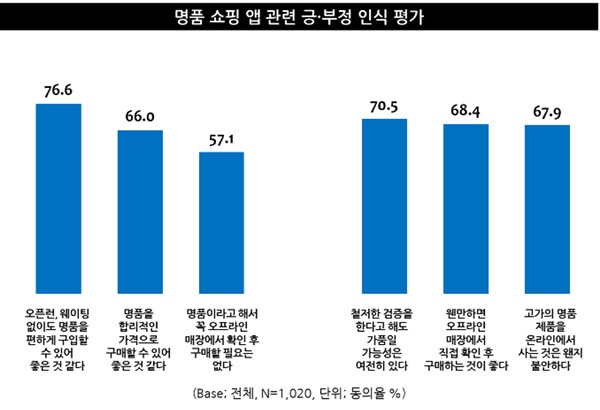 74.2%, “앞으로 명품 쇼핑 앱 이용자 더욱 증가할 것”... 69.5%, “향후 가품 유통과 관련해 많은 논란 있을 것”
