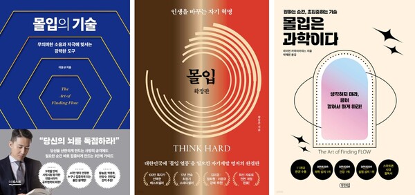 40만 공부법 유튜버 이윤규 변호사의 <몰입의 기술>은 우리를 산만하게 만드는 상황과 환경 속에서도 바로 집중하고 몰입에 이르는 3단계 '몰입의 기술'을 알려준다. <몰입 확장판>은 황농문 교수의 <몰입>을 전면 개정하고 17년간 축적된 수만 건의 데이터와 뇌과학 지식, 변화한 시대상 등을 새롭게 반영한 확장판이다. <몰입은 과학이다>는 수많은 생각과 계산 끝에 억지로 몰입하는 것이 아니라 몸 자체를 몰입에 익숙한 조건으로 재설정하는 방법을 구체적으로 소개한다.