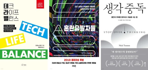 <테크 라이프 밸런스>는 디지털 기술을 중독적인 방식이 아니라 도구로써 사용하는 실질적인 실천법 101가지를 소개하고, <아이들의 화면 속에선 무슨 일이 벌어지고 있는가>는 온라인을 기본값으로 태어난 현 1020세대들이 맞닥뜨린 '화면 중독' 현실을 입체적으로 성찰한다. <혼란유발자들>은 소셜 미디어가 어떻게 인간 심리의 취약점에 파고들고 삶의 시간을 빼앗는지 다양한 사례를 통해 전한다.
