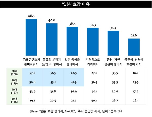 ‘일본’에 대한 적대감 점차 낮아지는 추세 보여... 저연령층, 일본의 ‘문화 콘텐츠’, ‘분위기’ 호감 이유로 꼽아