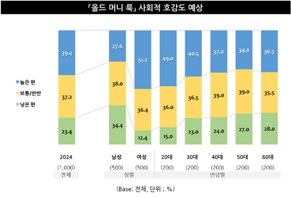 시장조사전문기업 엠브레인 트렌드모니터가 전국 만 19~69세 성인 남녀 1,000명을 대상으로 ‘「올드 머니(Old money)」 트렌드 현상 관련 조사’를 실시한 결과, 여성 및 저연령층을 중심으로 고급스러운 이미지를 추구하고 부유층을 선망하는 태도가 두드러진 가운데, 부유한 상류층을 의미하는 ‘올드 머니’ 트렌드에 대한 호감도는 아직까지 그리 높지 않은 것으로 조사되었다.