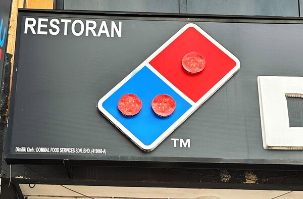 'pepperoni-fied' 로고는 수방자야(Subang Jaya)에 있는 도미노 매장의 간판에서 처음으로 나타났. 아마도 곧 더 많은 매장에서 볼 수 있을 것이다.
