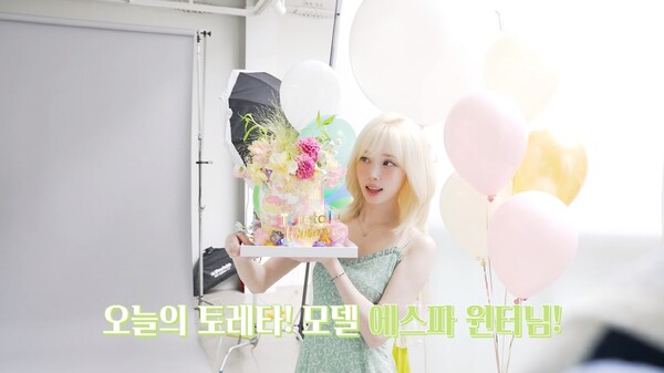 토레타! 모델 발탁을 기념하기 위해 준비한 케이크와 풍선을 들고 함박 웃음을 짓는 윈터의 모습을 비롯해 요가와 요리, 기타 연주, 강아지 산책, 러닝, 팬들과의 SNS 라이브 등을 촬영하는 광고 영상 속 비하인드 씬을 메이킹필름에서 엿볼 수 있다.