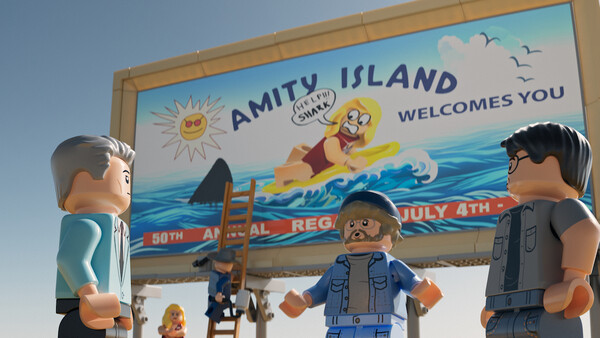 단편 영화는 크리시의 마지막 수영이라는 상징적인 오프닝 장면으로 시작한다. 전설적인 죠스 음악이 울려 퍼지면서 강력한 백상아리 브루스가 공격을 하는 모습이 등장한다. 원작 영화 팬이라면 알 수 있는 영화의 가장 상징적인 장면과 레고의 장난기 어린 상상력을 자연스럽게 섞은 유쾌한 오마주이다. 심지어 영화의 감독으로 미니 피규어 카메오로 스티븐 스필버그가 등장하기도 한다.
