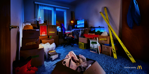 심플하고 스타일리시한 이 광고는 미니멀리즘 디자인의 대표적인 예로, 맥도날드 로고의 즉각적인 인지성을 훌륭하게 활용한 미묘하면서도 독창적인 캠페인을 만들어 냈다. 인터랙티브한 요소가 더해져 이사하는 날의 혼란스러움에 유쾌함을 더하는 이 캠페인을 인쇄물, OOH 및 맥도날드 소셜 미디어에서 만날 수 있다.