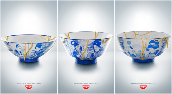 이 캠페인은 엄마의 따뜻하고 편안한 식사가 일을 해결하는 힘이 있다는 믿음으로 킨츠기에서 영감을 받은 도자기에 일러스트를 그려 넣은 포스터 시리즈이다. 포스터에서 닛신 라멘 가닥이 모든 깨진 조각을 고치는 래커 역할을 하고 깨짐과 상처에 대한 이야기를 묘사한다.