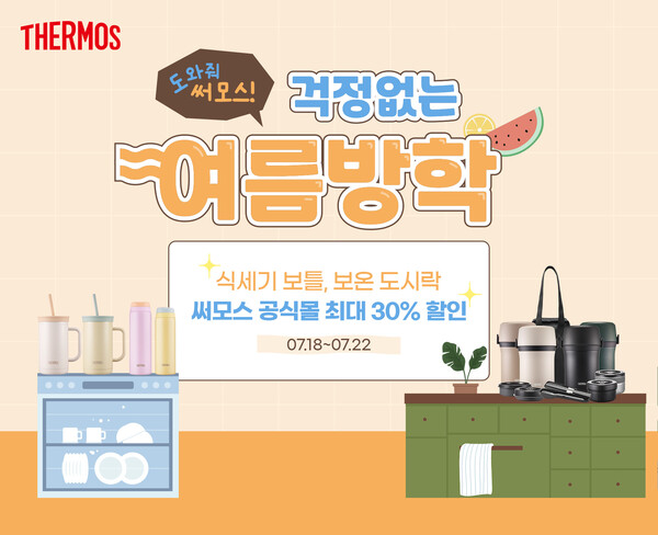 글로벌 보온병 브랜드 ‘써모스’가 7월 18일부터 22일까지 온라인 공식몰에서 텀블러, 도시락을 최대30% 할인하는 ‘걱정 없는 여름방학’ 기획전을 진행한다.