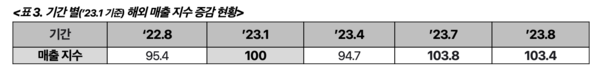 <표 3>에 따르면 여름 휴가 기간(7~8월) 중 해외 가맹점에서 발생된 고객 매출이 올해 초 대비 꾸준하게 증가했다. 특히, 올해 8월 해외 가맹점에서 발생된 매출은 전년 동기(’22.8) 대비 8.4% 증가했다.