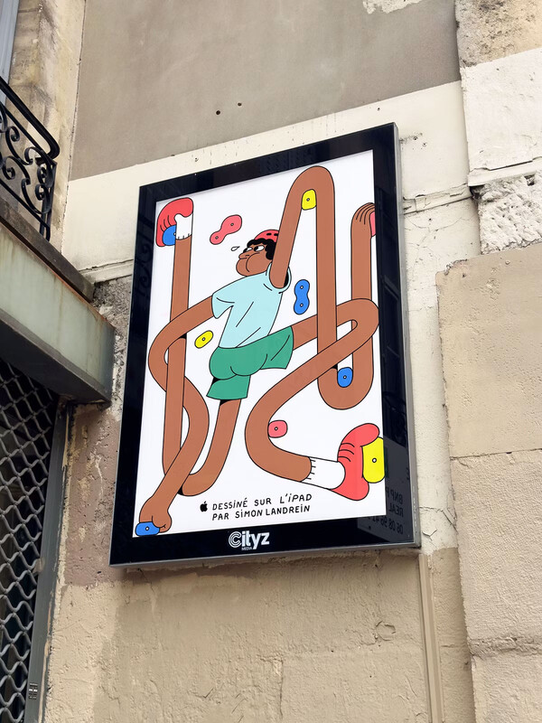 애플은 이번 여름에는 파리 2024 올림픽과 맞물려 프랑스에서 유쾌한 아이패드 광고 캠페인을 집행했다. 프랑스 파리와 마르세유 곳곳에서 다양한 크기로 집행된 애플의 옥외광고는 유연하고 신축성 있는 운동선수들이 식료품 웨이트리프팅에서 지하철 럭비에 이르기까지 일상적인 운동에 참여하는 모습을 보여준다.