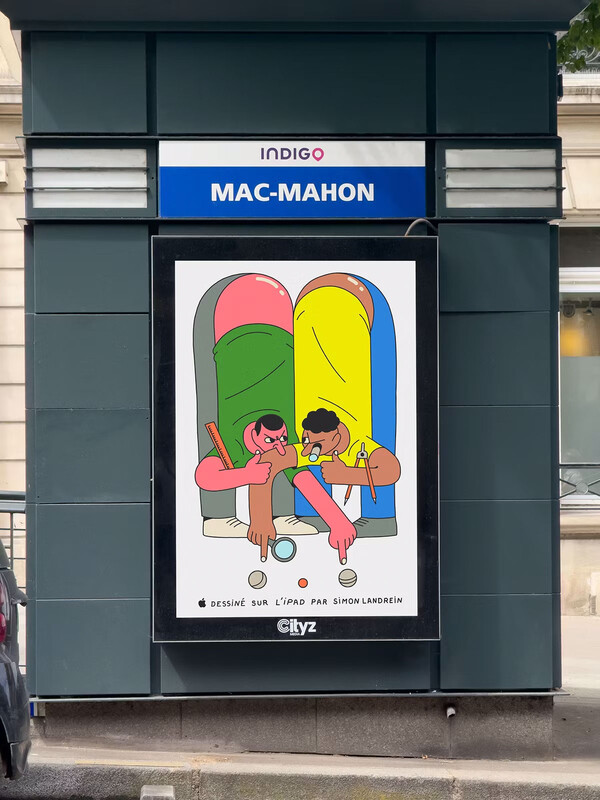 대담하고 독특한 작업으로 유명한 일러스트레이터이자 애니메이터인 시몽 랑드랭(Simon Landrein)은 애플의 Made on iPad 캠페인의 일환으로 23개의 일러스트를 제작했다. 이는 애플의 Shot on iPhone 시리즈를 재해석했다.