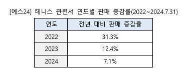 MZ 세대 내 ‘테린이’ 열풍을 불러일으킨 테니스 관련서는 최근 3년간 판매량이 꾸준히 상승했고, 2024년 상반기에는 작년 동기 대비 43.9% 급증했다. 특히 1020세대 구매가 증가하는 흐름을 보이며, 5년 전(2019년) 1% 미만이었던 10대 이하 구매자 비율은 2024년 5.6%, 한 자릿수(5.6%)에 불과했던 20대 구매자 비율은 12.8%로 상승했다.