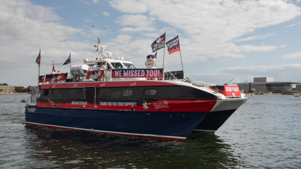 덴마크 코펜하겐 항구에 '바이킹의 후예를 위해 불닭이 돌아왔다', '당신들이 그리웠다', '불닭 팬들에게 감사한다' 등의 문구가 적힌 검은색과 빨간색의 페리가 나타났다. 이 페리에 인플루언서와 소비자 120명이 참석한 가운데 아이스크림 불닭과 불닭 오믈렛 등 이색 요리를 맛볼 수 있는 뷔페도 열렸다.