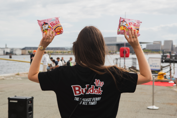 불닭은 8월 8일 목요일에 코펜하겐 항구에서 역대 가장 매운 페리 파티를 시작했다. 수천 명이 소셜 미디어를 통해 이벤트에 참여하기 위해 지원한 후, 100명이 매운 음료를 즐기고, 불타는(에어브러시) 문신을 하고, 갑판에서 상징적인 국수 수프의 개인화된 480인분을 맛볼 수 있는 행운을 얻었다. 유명 셰프 Gorm Wisweh와 Buldak 마스코트 Hochi가 군중을 열광시키며 "매운 것에 대한 자유!"를 외치는 동안, 나머지 팬들은 덴마크의 태양 아래서 춤을 추었다.