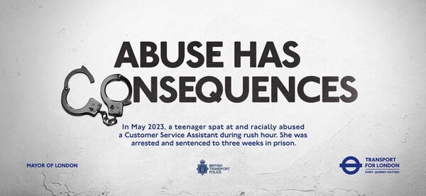 런던교통공사(TfL, Transport for London)은 네트워크 내 직원에 대한 폭력과 공격에 대처하기 위해 새로운 캠페인인 "학대에는 결과가 따른다(Abuse Has Consequences)"를 론칭했다.