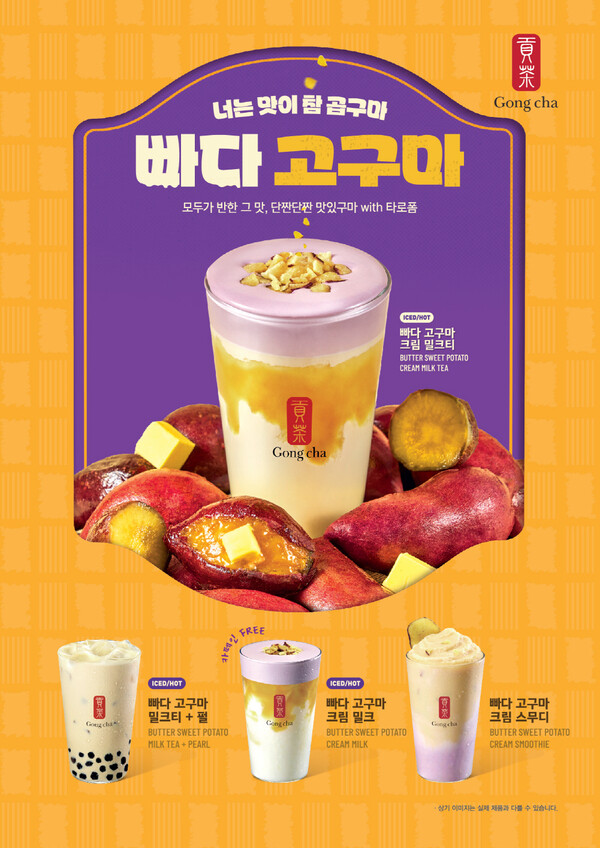 글로벌 티(Tea) 음료 전문 브랜드 공차코리아가 가을을 맞아 전통 간식인 고구마를 활용한 ‘빠다 고구마 4종’을 출시하고 신메뉴 출시를 기념해 멤버십 이벤트를 진행한다고 3일 밝혔다.