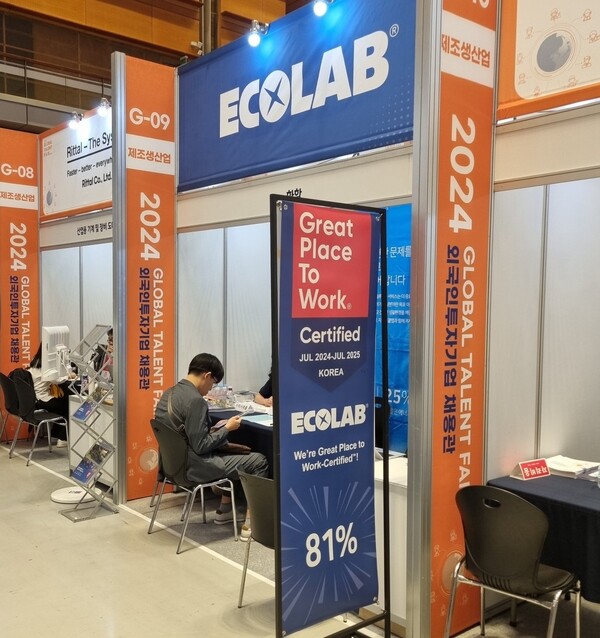 한국이콜랩(대표 류양권)이 지난달 27일부터 이틀간 서울 삼성동 코엑스에서 개최된 ‘2024 글로벌 탤런트 페어(Global Talent Fair)’에 참가했다.