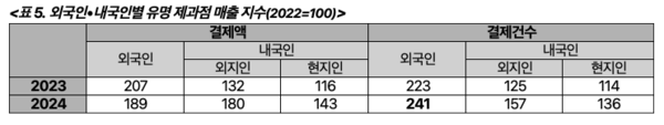 지역별 제과 업종 매출 상위 5곳씩의 데이터를 분석한 결과, 해당 업종에서 발생된 외국인 결제 건수가 지난 2년새 2배 이상 증가했다. 특히, 해당 기간 내 외지인의 결제 건수 증가율(+57%) 대비 3배(+141%)가량 차이나는 등 한국에서 유행 중인 '빵지순례'가 외국인 사이에서도 유행하고 있는 것이 확인됐다.