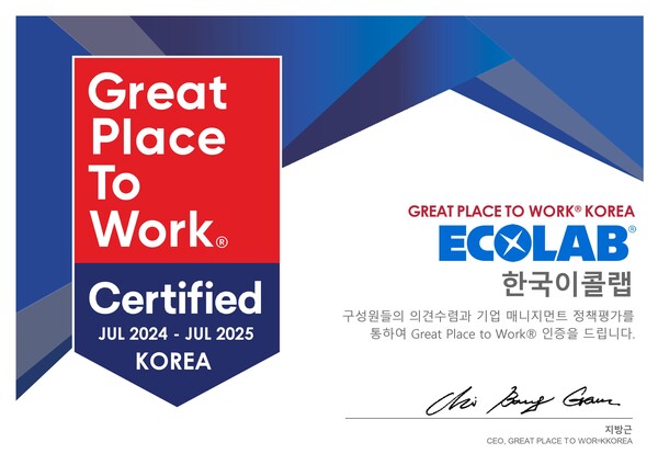 한편 이콜랩은 올해 유럽 25개 국가와 동남아시아 6개 국가에서도 GPTW ‘일하기 좋은 기업’으로 인정받은 바 있다. 이콜랩은 물과 에너지 사용 최적화, 식품 안전 증진, 청결한 환경 유지 등을 통해 인류와 필수 자원을 보호하는 통합 솔루션을 170개 이상의 국가에 제공하고 있다.