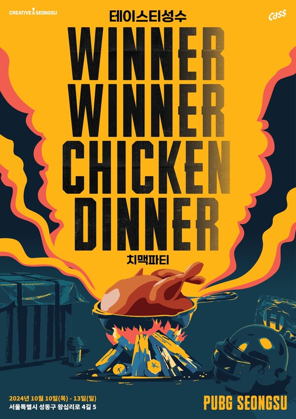 먼저 오는 10일부터 13일까지 ‘WWCD 치맥파티’를 개최한다. WWCD 치맥파티는 배틀그라운드의 승리 문구인 ‘Winner Winner Chicken Dinner(WWCD·이겼닭! 오늘 저녁은 치킨이닭!)’를 모티브로 한 레트로 콘셉트의 행사다. 성동문화재단이 주최하는 문화창조산업축제 ‘크리에이티브x성수’의 일환으로 진행된다. 방문객들은 성수동 소재 음식점 4곳의 대표 메뉴를 한자리에서 맛볼 수 있으며, 8090 트렌드의뮤직 디제잉 그룹 ‘동네한바퀴’의 공연을 즐길 수 있다. WWCD 치맥파티는 네이버 사전 예약 및 워크인 방문 모두 가능하며 오후 4시부터 10시까지 운영된다.