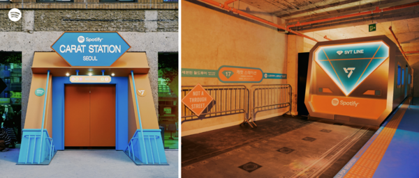 글로벌 오디오·음원 스트리밍 플랫폼 ‘스포티파이(Spotify)’가 세븐틴(SEVENTEEN)의 ‘SEVENTEEN [RIGHT HERE] WORLD TOUR’를 기념하는 ‘캐럿 스테이션 서울(CARAT Station Seoul)’ 팝업을 성황리에 진행 중이라고 밝혔다.