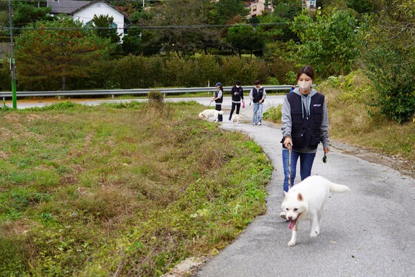 임직원 11명 참여해 보호소 위생 관리 및 산책 봉사 진행