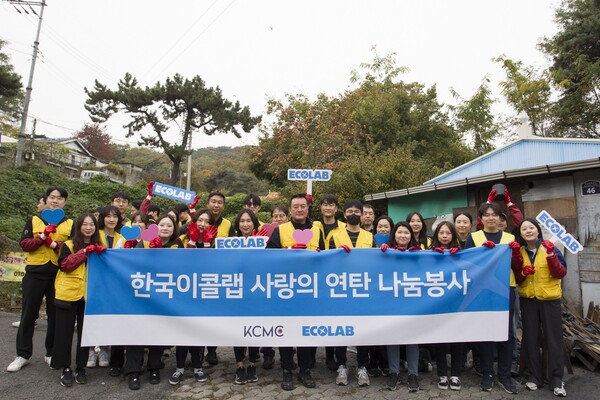 한국이콜랩(대표 류양권)이 1일 다국적기업 최고경영자협회(KCMC)와 서울연탄은행이 공동 주최한 ‘사랑의 연탄 나눔 봉사활동’을 실시했다. 한국이콜랩은 ESG 솔루션을 통해 세상을 더 깨끗하고, 안전하고, 건강하게 만든다는 비전 아래 에너지 취약계층이 따뜻한 겨울을 보낼 수 있도록 지원했다.