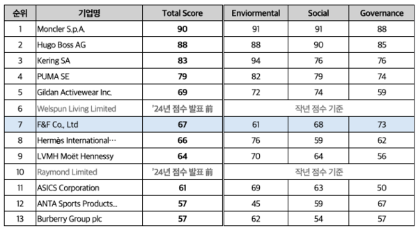 S&P ESG평가에서 글로벌 패션기업 188개 중 7위 기록