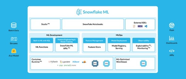 스노우플레이크가 데이터 환경을 단순화하고 AI 개발과 애플리케이션 구축을 가속화하기 위해 플랫폼과 AI 기능 강화를 발표했다. 주요 업데이트로는 스노우플레이크 코텍스 AI(Snowflake Cortex AI)와 스노우플레이크 ML 등이 있다. 스노우플레이크 코텍스 AI는 생성형 AI 및 자연어 처리(NLP), 멀티모달 데이터 분석을 지원해 고품질 대화형 애플리케이션 구축과 AI 프로젝트 비용 절감을 돕는다. 스노우플레이크 ML은 GPU 기반 컨테이너 환경과 대규모 추론 작업을 위한 처리량 개선으로 ML 개발 속도와 성능을 향상했다. 아파치 아이스버그(Apache Iceberg)와 데이터 레이크하우스 기능 강화로 데이터 거버넌스를 개선했으며 트러스트 센터(Trust Center)와 API 인증 보안 기능을 통해 보안 또한 강화했다. 이외에도 문서 전처리 기능, 지식 베이스 통합, 모델 파인튜닝, 대화형 앱 신뢰성 개선,데이터 분석 강화 등의 기능을 제공한다.
