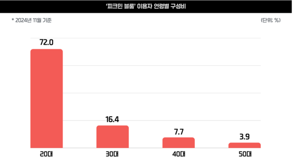증강현실(AR) 모바일 게임 ‘피크민 블룸’이 SNS에서 입소문을 타면서 이용자 수가 급증하고 있는 것으로 나타났다. 마크로밀 엠브레인 패널빅데이터® 분석에 따르면, 2021년 11월 출시된 모바일 게임 ‘피크민 블룸’은 올해 9월 이후 이용자 수가 가파른 증가 추이를 보이면서 급기야 11월에는 1161.8%의 신장률을 기록해 괄목할 만한 성장세를 보인 것으로 확인됐다. 특히, 20대 저연령층의 비율이 72.0%에 달할 만큼 압도적으로 높았고(20대 72.0%, 30대 16.4%, 40대 7.7%, 50대 3.9%), 여성 유저의 비중 역시 전체의 81.2%를 차지하며 높은 수치를 기록했다.