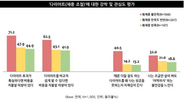 ‘다이어트’ 위해 ‘비용 투자’ 의향 높은 편... 현재 ‘체중 만족도’ 낮을수록 ‘투자’ 의향 높아져