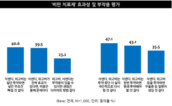 42.7%, ”비만 치료제로 다이어트 시도할 의향 있어” 47.1%, “삭센다, 위고비 투약 중단 시 살 다시 찔 것 같아”