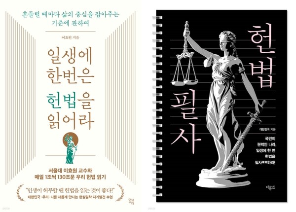이외에도 일반인의 눈높이에 맞춰 읽기 쉬운 헌법 해설서 <지금 다시, 헌법>, 말랑말랑한 말로 헌법 100문장을 재미있게 소개하는 <슬쩍 보는 헌법>, 휴대가 간편한 미니북을 수록한 <대한민국헌법> 등이 ‘헌법’ 관련서 베스트셀러 5위권 내에 올랐다.