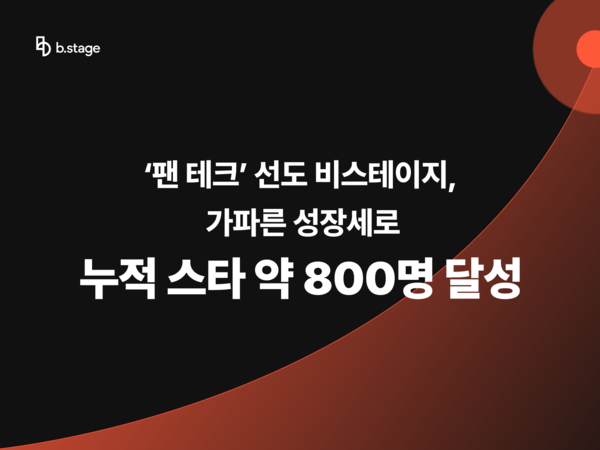 팬덤 비즈니스 솔루션 비스테이지(bstage.in)가 누적 스타 796명(2월 10일 기준)을 돌파하며 업계 최대 규모의 팬덤 플랫폼으로 도약했다. 또한 지난해 150개 이상의 신규 고객을 영입하며 누적 220개 이상의 비스테이지가 오픈해, 타 팬 커뮤니케이션 플랫폼 신규 입점 수 대비 약 3배에 달하는 성장세를 보였다.