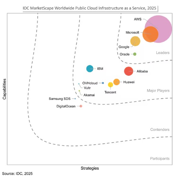 IDC 마켓스케이프 보고서는 13개의 퍼블릭 클라우드 IaaS(서비스형 인프라) 제공업체를 평가했으며, 각 제공업체의 대규모 서비스 제공 능력과 다양한 기능 제공 범위, 혁신성 등을 기준으로 분석했다.