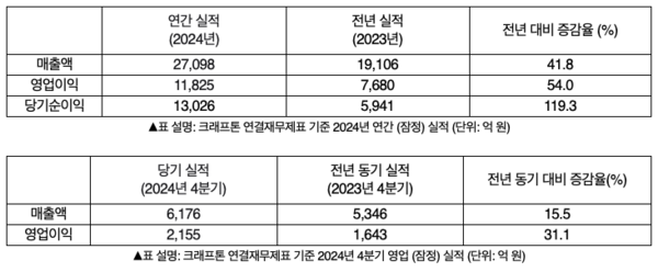 ㈜크래프톤(대표 김창한)이 11일 기업설명회(IR)를 열고 2024년 연간 및 4분기 경영실적을 발표했다.