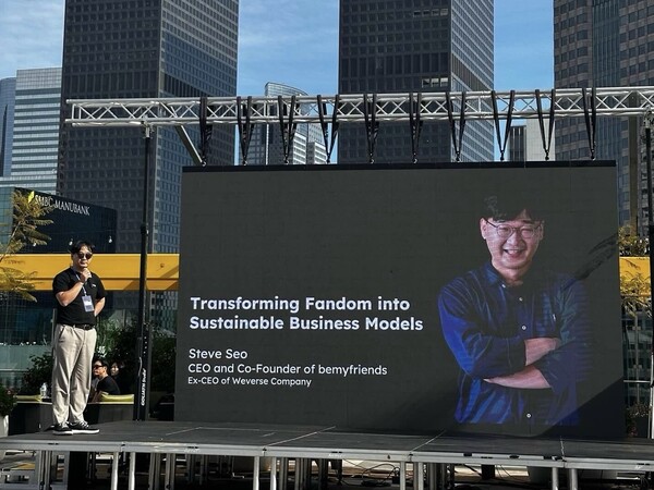 팬덤 비즈니스 솔루션 비스테이지(bstage.in)를 개발하고 운영하는 기업 비마이프렌즈의 서우석 대표가 지난 22일(현지 시각) 미국 캘리포니아에서 22일(현지 시각) 열린 ‘K-Culture & Tech’ 포럼에 연사로 참석했다. 그는 비스테이지의 혁신적인 팬덤 비즈니스 모델을 소개하며, 글로벌 시장에서의 목표와 비전에 재해 발표했다.