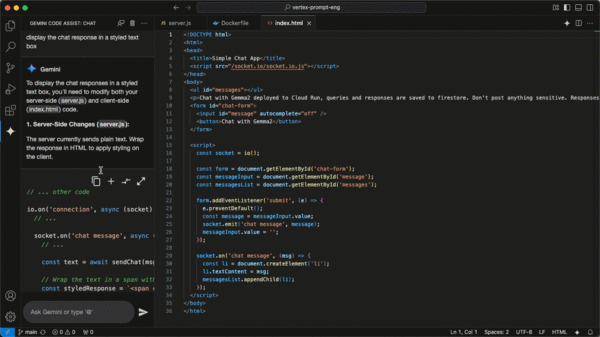 개발자는 제미나이 코드 어시스트에서 한국어를 비롯한 다양한 국가의 언어를 자연어로 사용해 코드를 생성하고, 설명하며, 개선할 수 있다. 예를 들어 프리랜서 웹사이트 개발자는 “이름, 이메일, 메시지를 필드값으로 갖는 간단한 HTML 양식을 만든 다음, ‘제출’ 버튼을 추가해 줘”와 같은 프롬프트만으로 빠르게 코드를 생성할 수 있다. “매일 최신 일기 예보가 포함된 이메일을 발송하는 스크립트를 작성해 줘”, “이 파이썬 코드 스니펫(snippet)이 하는 일을 설명하고 오류를 찾아줘”와 같이 반복적인 작업을 제미나이에게 요청해 자동화할 수도 있다.