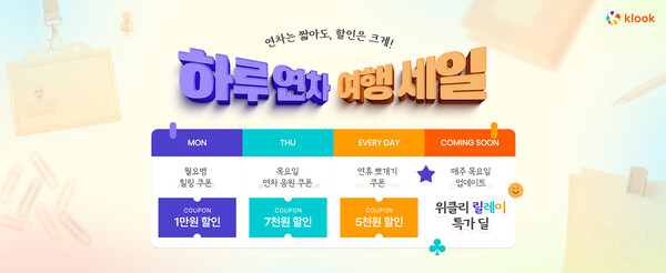 전 세계 숙박·교통·액티비티 예약 플랫폼 클룩(Klook)이 봄맞이 ‘하루연차 여행세일’ 프로모션을 전개한다고 28일 밝혔다.
