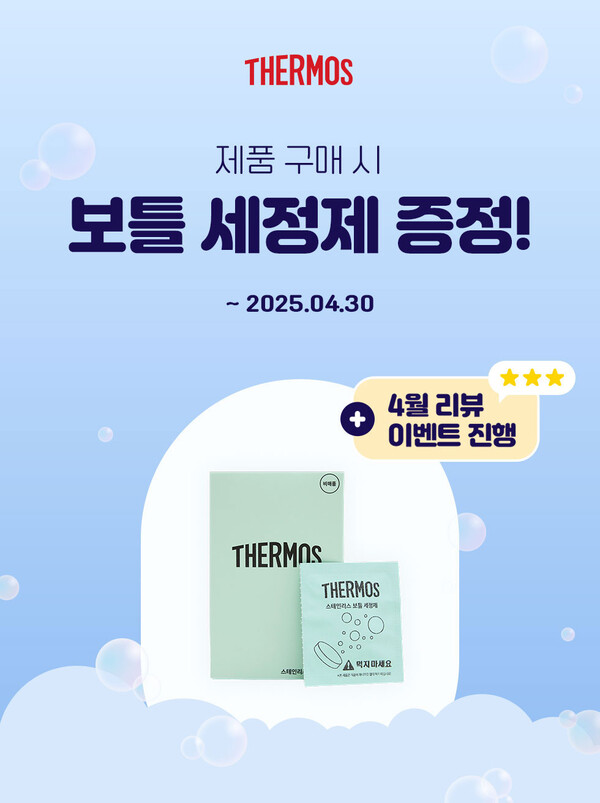 써모스코리아 관계자는 “4월은 봄소풍 등 야외활동이 늘어나면서 텀블러 수요가 증가하는 시기인 만큼, 따뜻한 날씨 속에서 위생 관리에 더욱 신경 쓸 수 있도록 보틀 세정제를 증정하고 있다”며 “당사 공식몰 회원이라면 기획전에서 다양한 혜택을 받을 수 있으니 앞으로도 많은 관심과 성원 부탁드린다”고 말했다.
