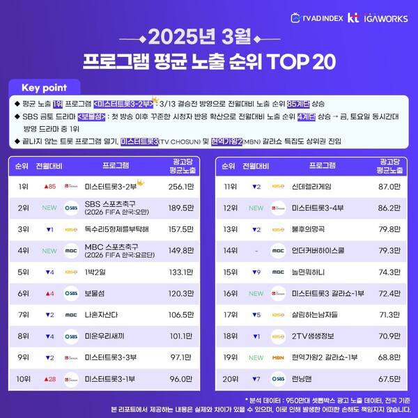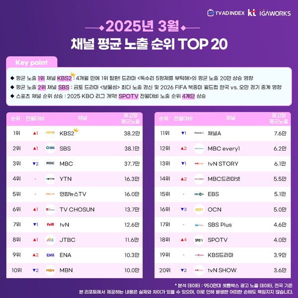 해당 내용은 KT의 950만 셋톱박스 데이터를 토대로 국내 전체 노출량을 추정한 수치로 실제와 다를 수 있다.