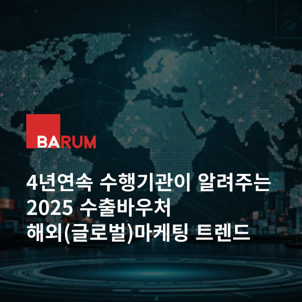 바름은 2025년 올해로 4년 연속 수출바우처 수행기관으로 선정되며 그 전문성을 인정받았습니다. 바름은 기업별 맞춤 전략 수립, 글로벌 마케팅 노하우, 다양한 온/오프라인 마케팅 활동 등을 통해 기업의 성공적인 해외 진출을 지원합니다.