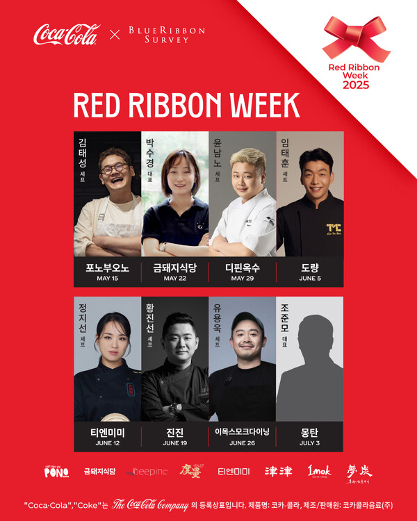 코카-콜라사 관계자는 “‘레드리본 위크 2025’는 한 끼 식사를 더욱 특별하게 만들어주는 코카-콜라의 진가를 유명 레드리본 레스토랑에서 경험할 수 있는 특별한 기회가 될 것”이라며 “오랜 기간 뜨거운 인기를 구가하고 있는 맛집 8곳에서, 맛있는 음식에 코카-콜라 한 잔이 더해질 때 완성되는 미식 경험을 직접 즐기시고 특별한 추억도 남겨보시길 바란다”고 말했다.