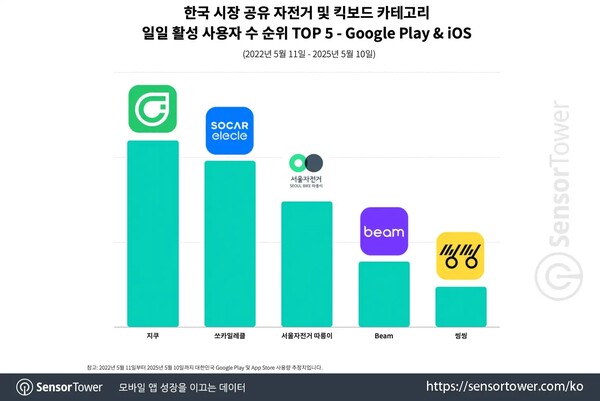《지쿠》, 아시아 공유 자전거 및 킥보드 앱 중 일일 활성 사용자 수 2위… 한국에서는 1위