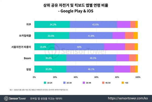 한국은 《지쿠》 전체 일일 활성 사용자 수의 91.7%를 차지했으며, 태국 등이 그 뒤를 이었습니다. 이를 바탕으로 《지쿠》는 지난 3년간 아시아 지역 공유 자전거 및 킥보드 앱 중 일일 활성 사용자 수 기준 2위를 기록했는데요. 특히 한국 시장에서의 높은 사용량만으로 아시아 시장 상위권에 오른 점은, 해당 서비스에 대한 한국 사용자들의 높은 이용률을 잘 보여줍니다.