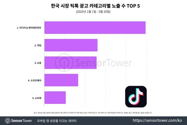 틱톡 채널에서는 숏폼 드라마 플랫폼의 약진이 두드러지며, 게임 카테고리가 주도하는 유튜브 채널과는 달리 틱톡은 미디어 및 엔터테인먼트 카테고리가 광고 지출과 노출 수 모두에서 선두를 차지했습니다.