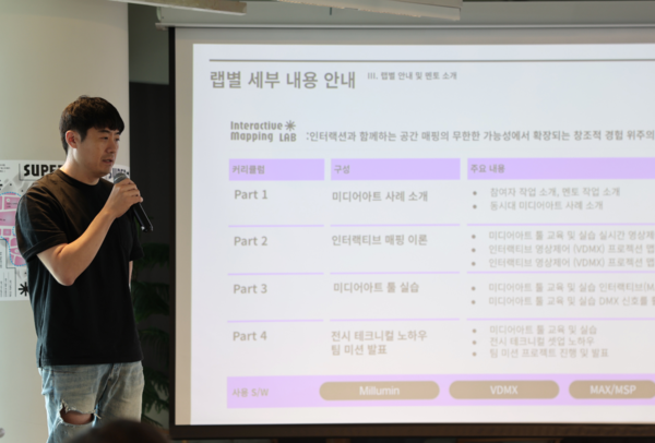 ‘수퍼 테스트베드’는 아트코리아랩의 대표적인 예술×기술 융합 지원사업으로, 예술 영역을 확장하고 실험하는 예술가들을 대상으로 맞춤형 기술 교육, 1:1 밀착 멘토링, 기술접목 창작 실험 및 프로토타입 제작, 국내외 유통 지원까지 아우르는 ‘올인원’ 프로그램이다. 본 프로그램의 결과물은 오는 12월 초, 과정 공유회 <랩들이>를 통해 대중에게 공개될 예정이다.