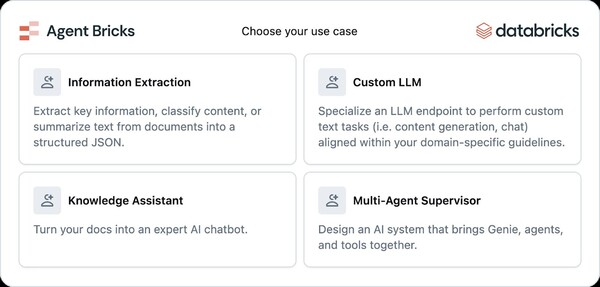 업계 선도적인 데이터 및 AI 기업 데이터브릭스(Databricks)는 오늘 비즈니스 맞춤형 고성능 AI 에이전트를 자동으로 생성할 수 있는 신규 솔루션 ‘에이전트 브릭스(Agent Bricks)’를 공개했다. 사용자는 에이전트 작업에 대한 전반적인 설명과 기업 데이터를 연결하면, 나머지 모든 과정은 에이전트 브릭스가 자동으로 처리한다. 에이전트 브릭스는 ▲구조화된 정보 추출, ▲신뢰도 높은 지식 탐색 지원, ▲맞춤형 텍스트 변환, ▲다중 에이전트 시스템 오케스트레이션 등 다양한 업계 표준 활용 사례에 최적화되어 있으며, 오늘부터 베타 버전으로 이용 가능하다.