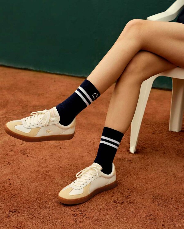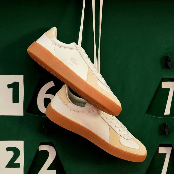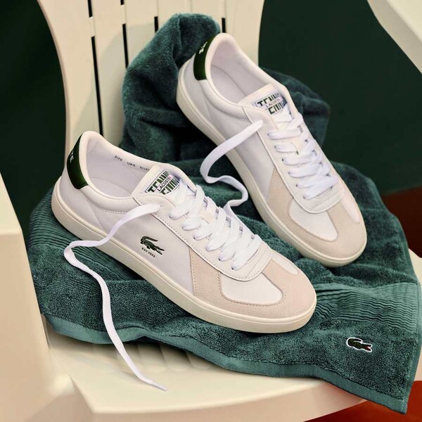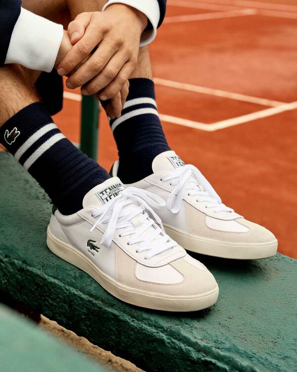 부드러운 가죽 어퍼와 스웨이드 토박스 오버레이가 조화를 이루는 ‘베이스샷 프로’는 질감있는 러버 아웃솔로 다양한 표면에서 쿠셔닝과 접지력을 제공하며, 발목을 부드럽게 감싸는 로우 컷 패딩 칼라는 편안한 착화감을 선사한다. 힐탭과 측면의 라코스테 로고 프린트와 텅에 부착된 직조라벨은 브랜드 헤리티지를 강조했다.
